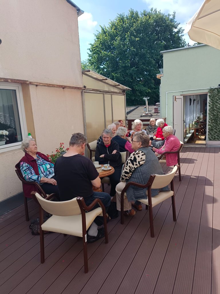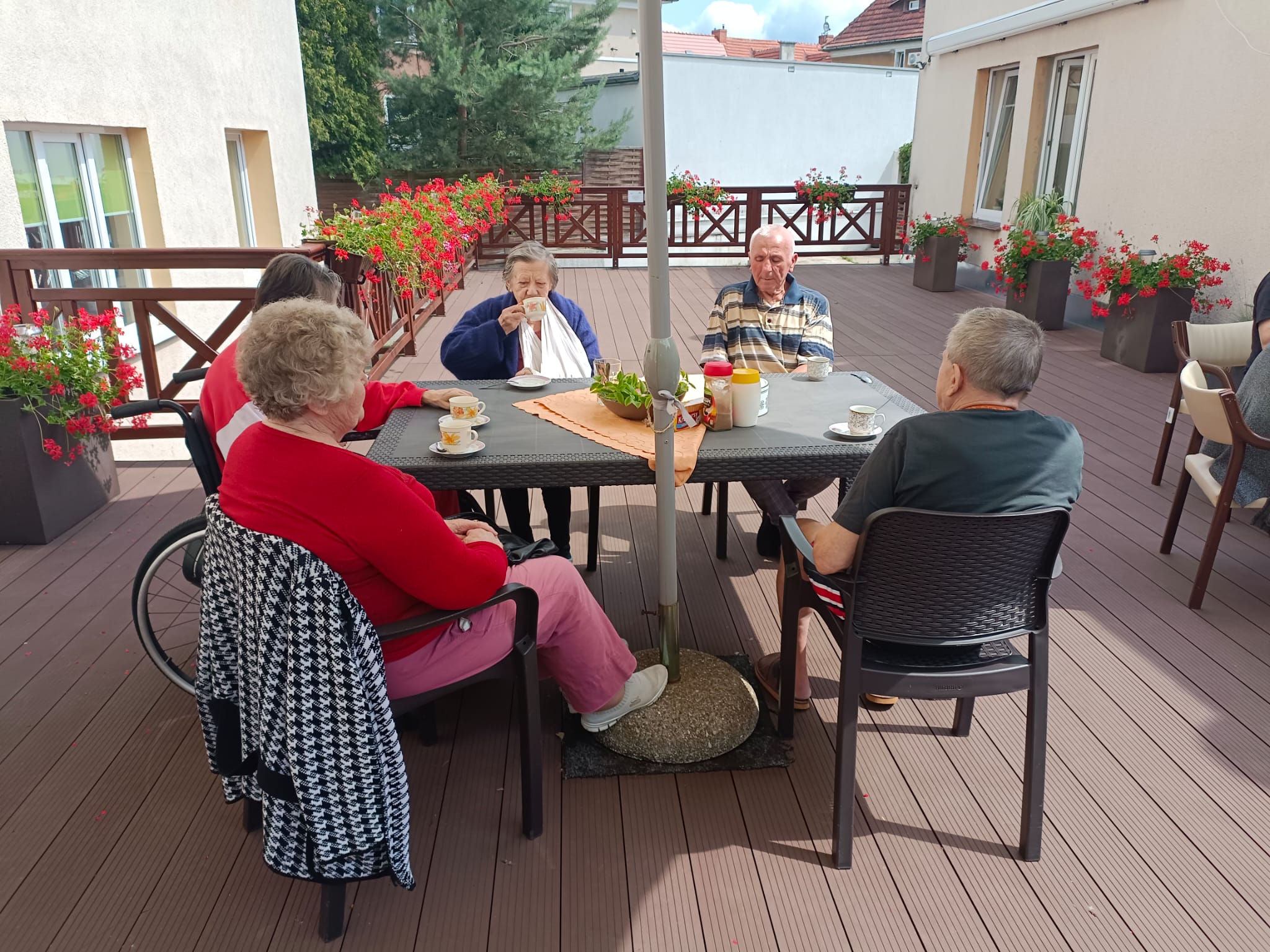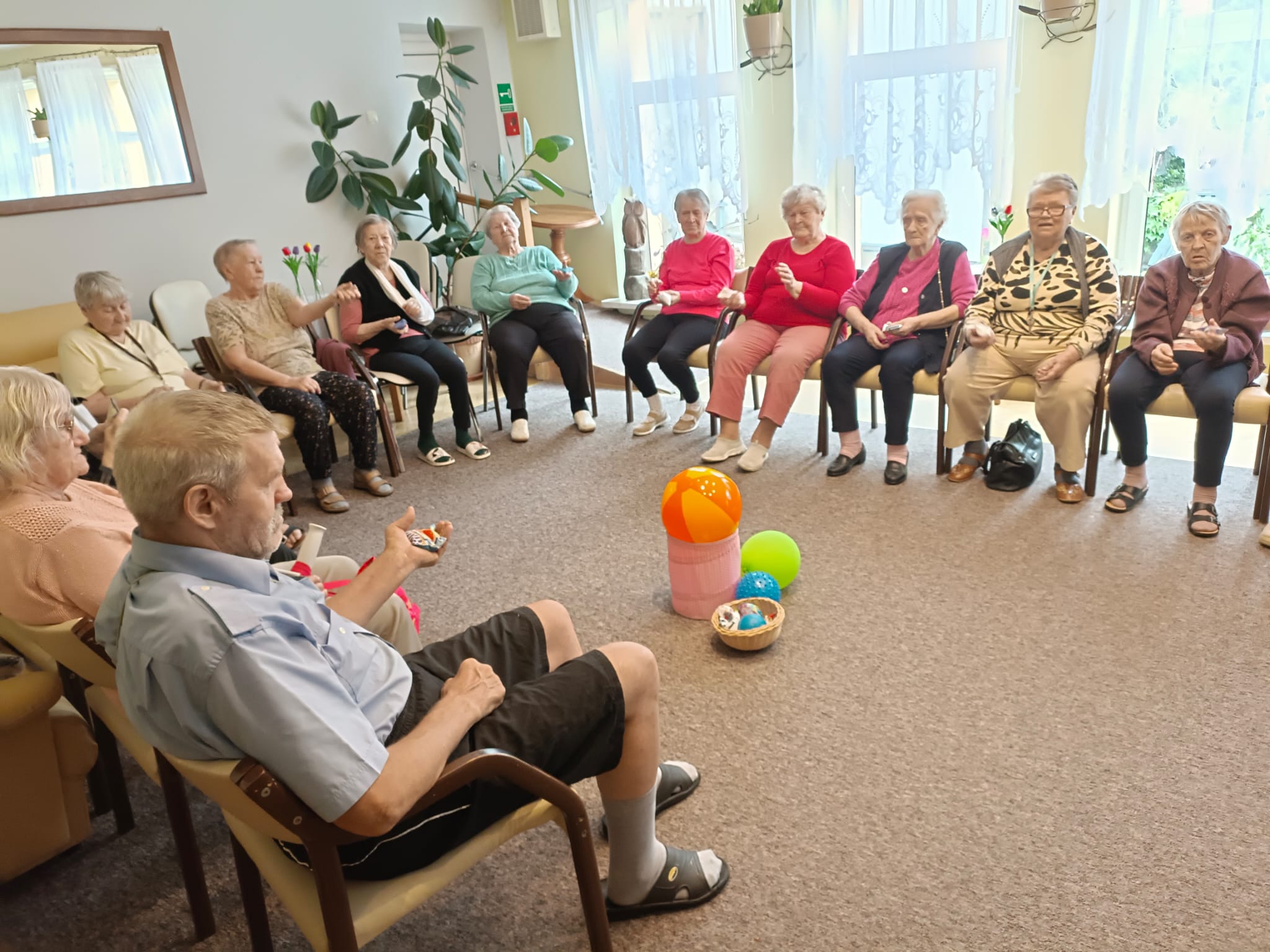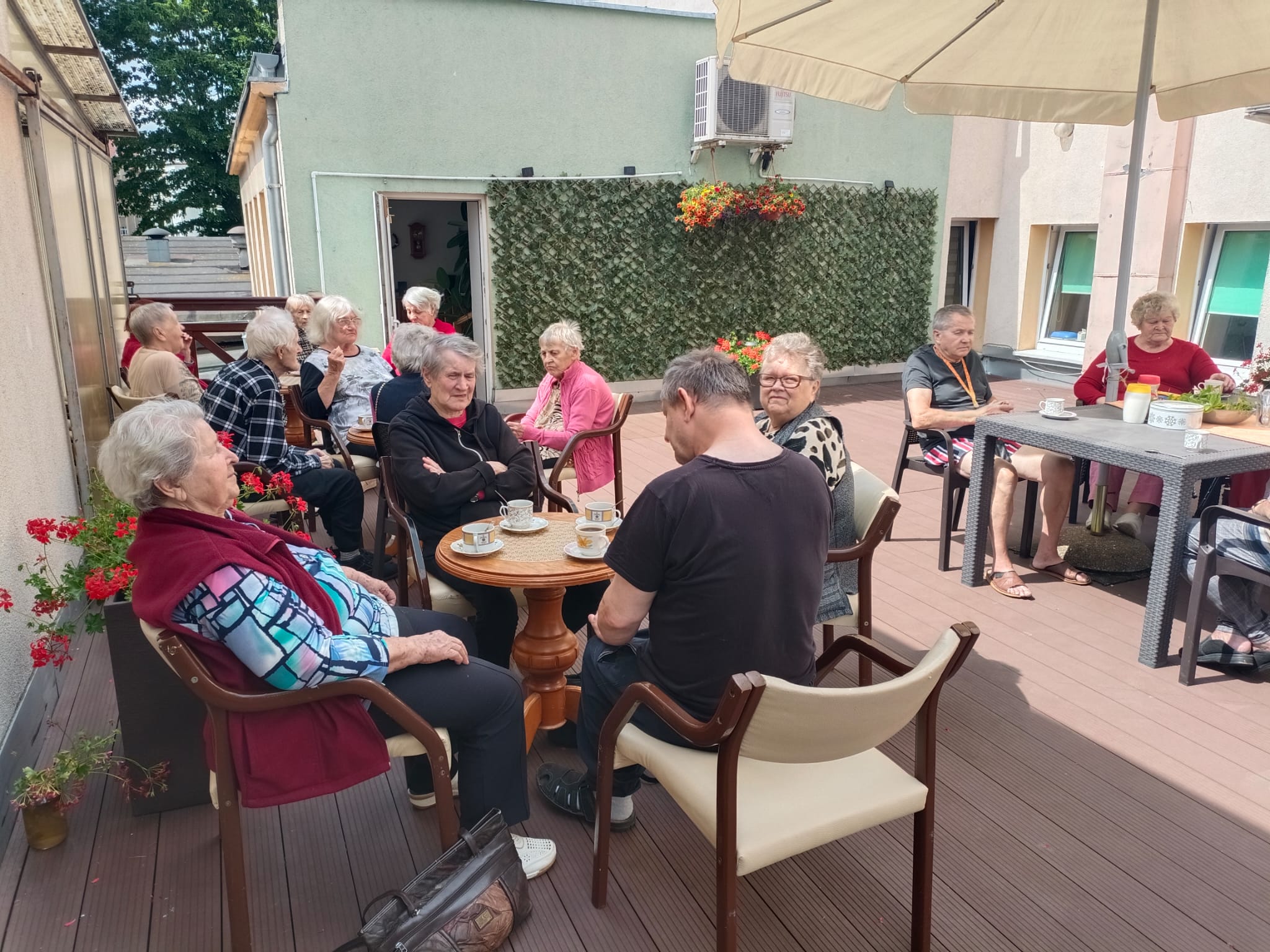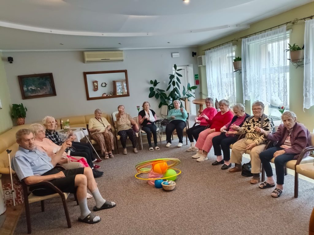 Seniorzy przez z cały czerwiec uczestniczyli w gimnastyce w formie zabawy psychoruchowej a w piękne słoneczne dni odpoczywali na tarasie Naszego Domu, co pozytywnie wpłynęło na zdrowie i samopoczucie.