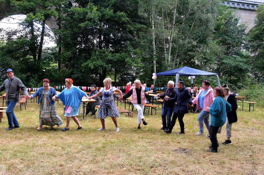 Po części oficjalnej, nastąpił czas na rozrywkę. Był to czas na rozmowy wspólne biesiadowanie, dzielenie się doświadczeniami ogrodniczymi oraz budowanie więzi między członkami społeczności ogrodowej ROD “NYSA” w Zgorzelcu. Obchody swoją obecnością uświetnił także twórca legendarnego szlagieru „Biały Miś” pan Janusz Kreft.