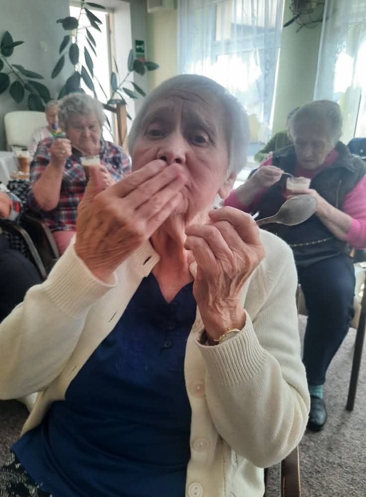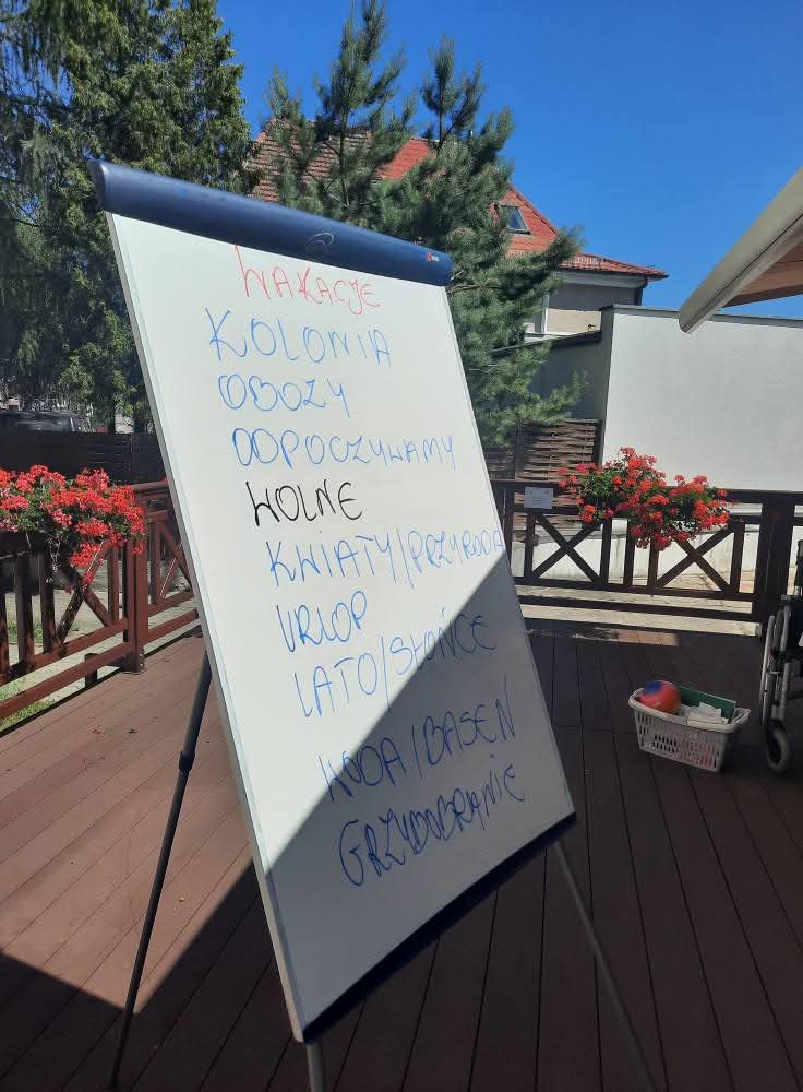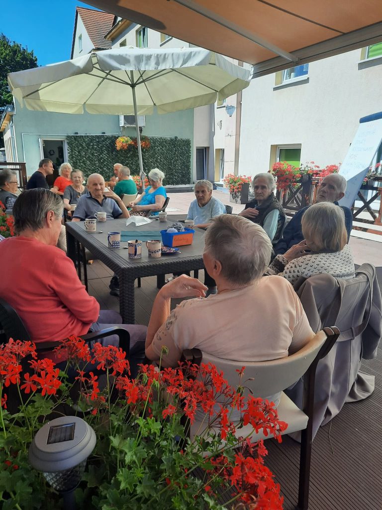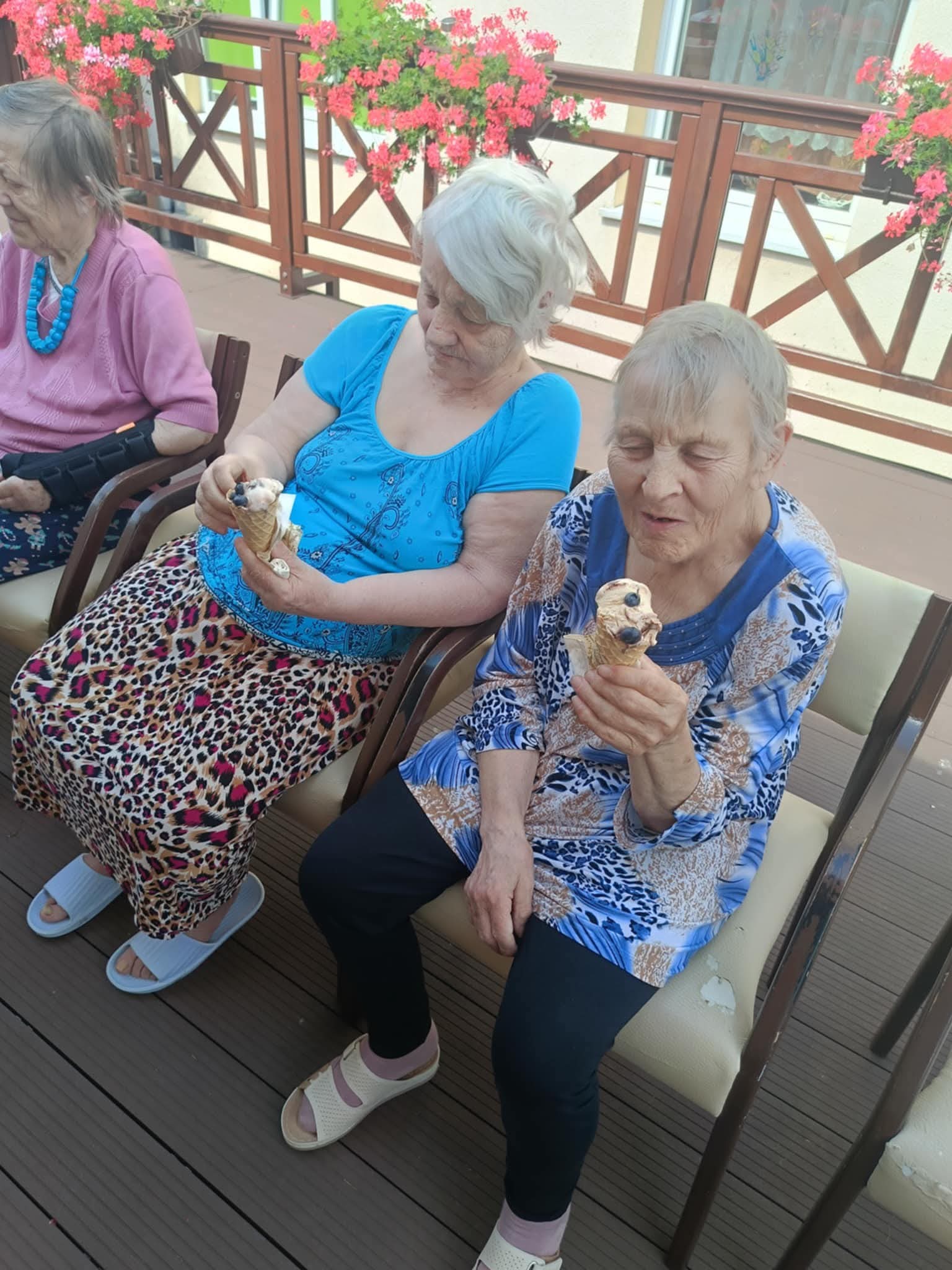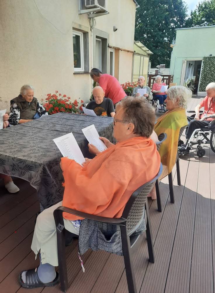 W słoneczne dni nasi Podopieczni spędzają czas na tarasie pijąc mrożoną kawę i zajadając pyszne lody. Miesiąc lipiec upłynął nam na treningach pamięciowych, kalamburach i krzyżówkach. Seniorzy mieli okazję pracować manualnie, malując obrazki, wykonując kolorowe pokrywki techniką decoupage. Uczestniczyli w gimnastyce w formie psychozabawy, zgodnie z zasadą „W zdrowym ciele zdrowy duch”.