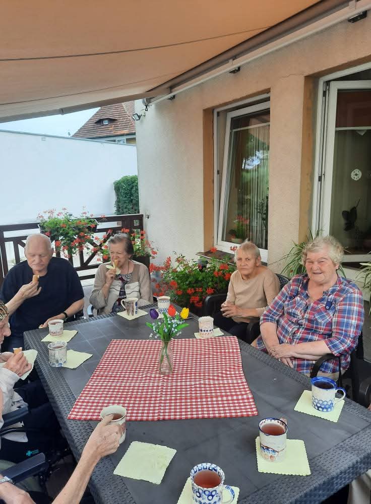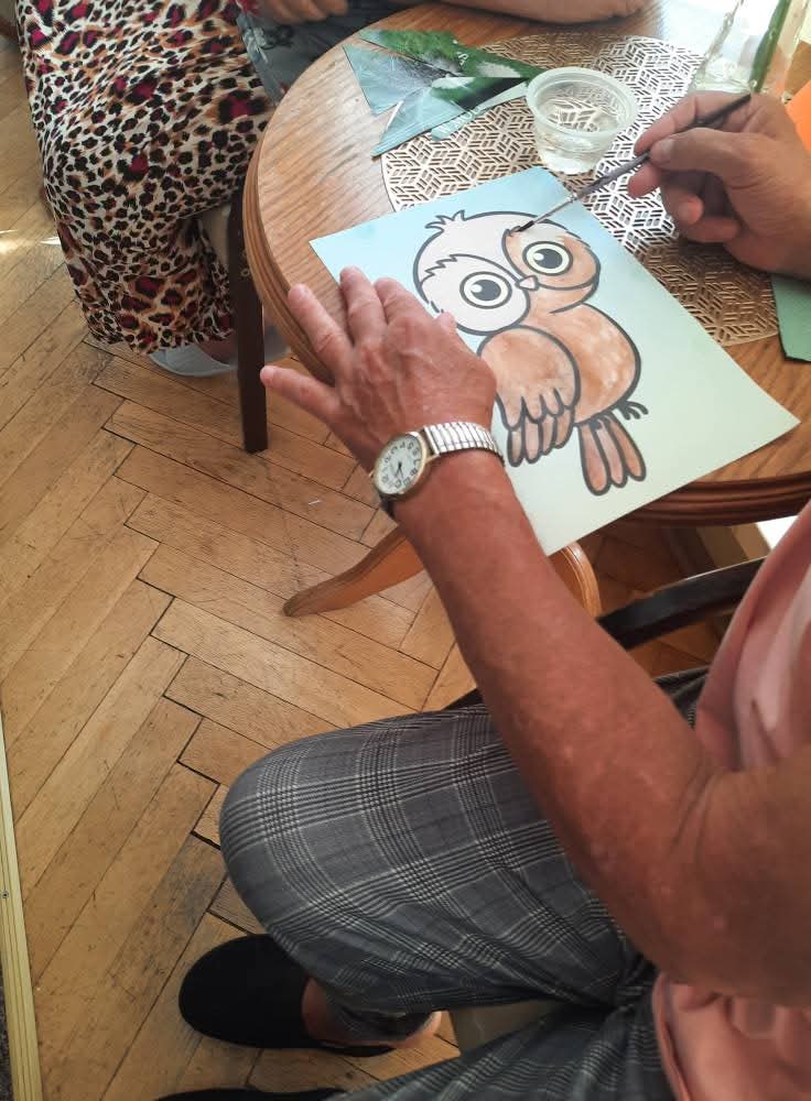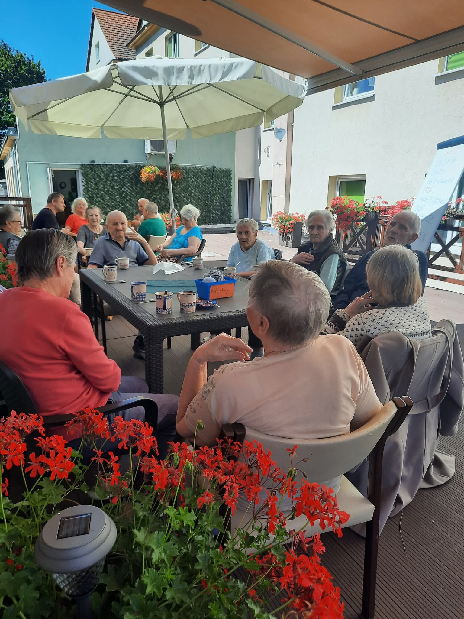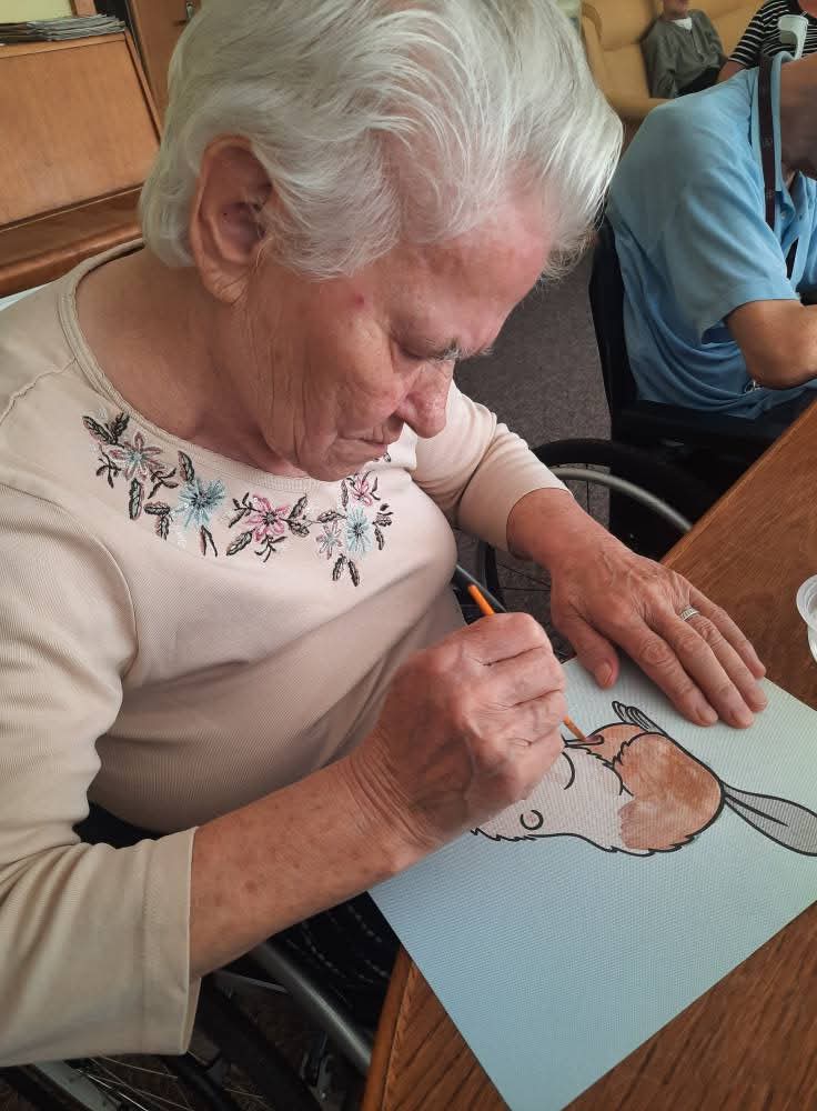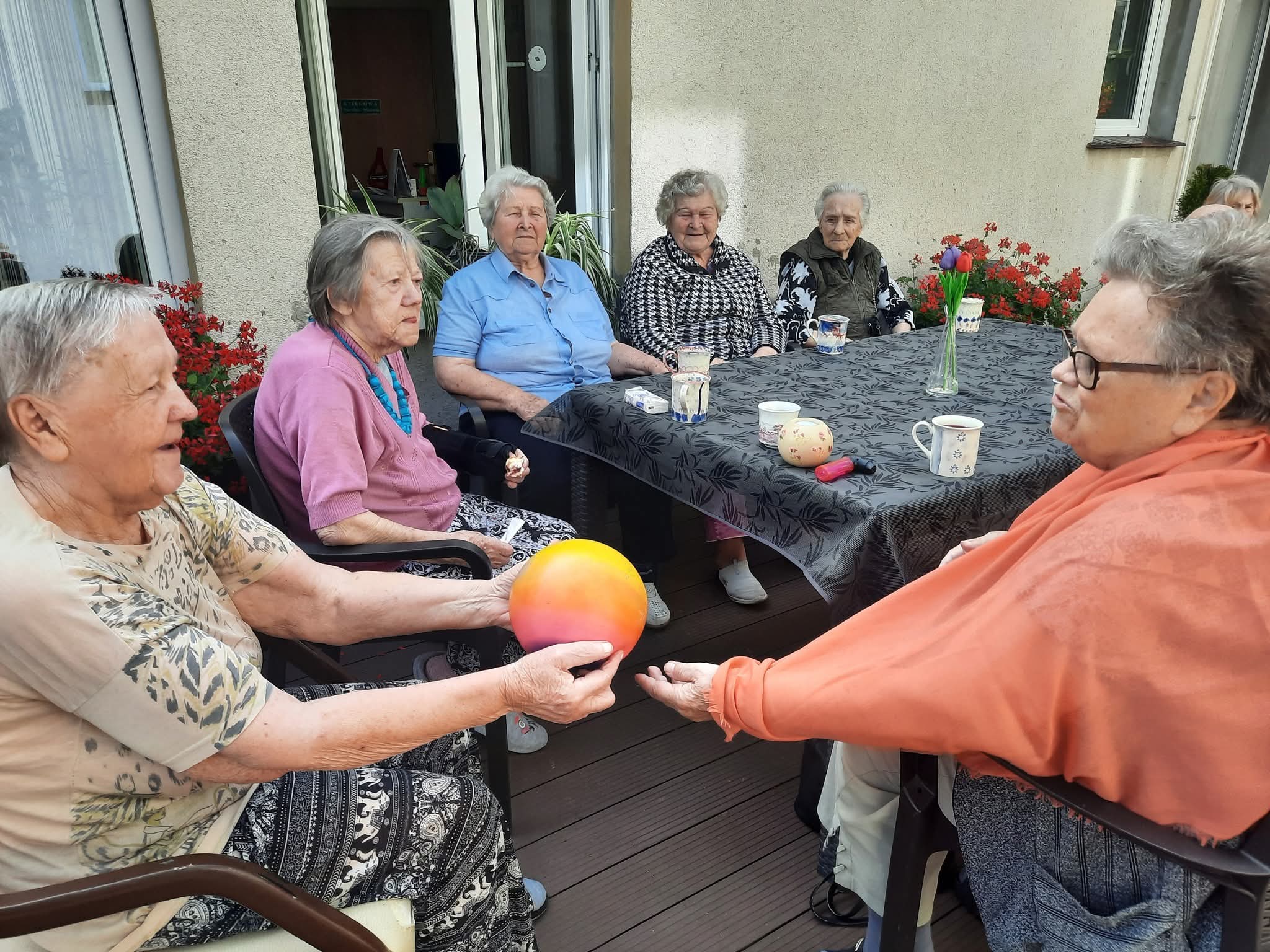 W słoneczne dni nasi Podopieczni spędzają czas na tarasie pijąc mrożoną kawę i zajadając pyszne lody. Miesiąc lipiec upłynął nam na treningach pamięciowych, kalamburach i krzyżówkach. Seniorzy mieli okazję pracować manualnie, malując obrazki, wykonując kolorowe pokrywki techniką decoupage. Uczestniczyli w gimnastyce w formie psychozabawy, zgodnie z zasadą „W zdrowym ciele zdrowy duch”.