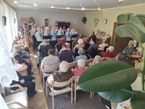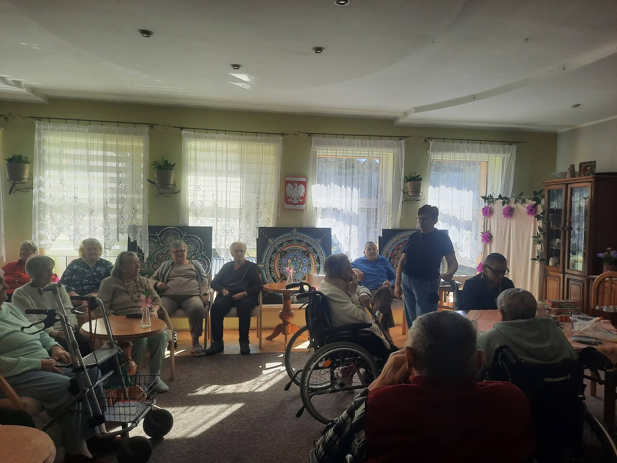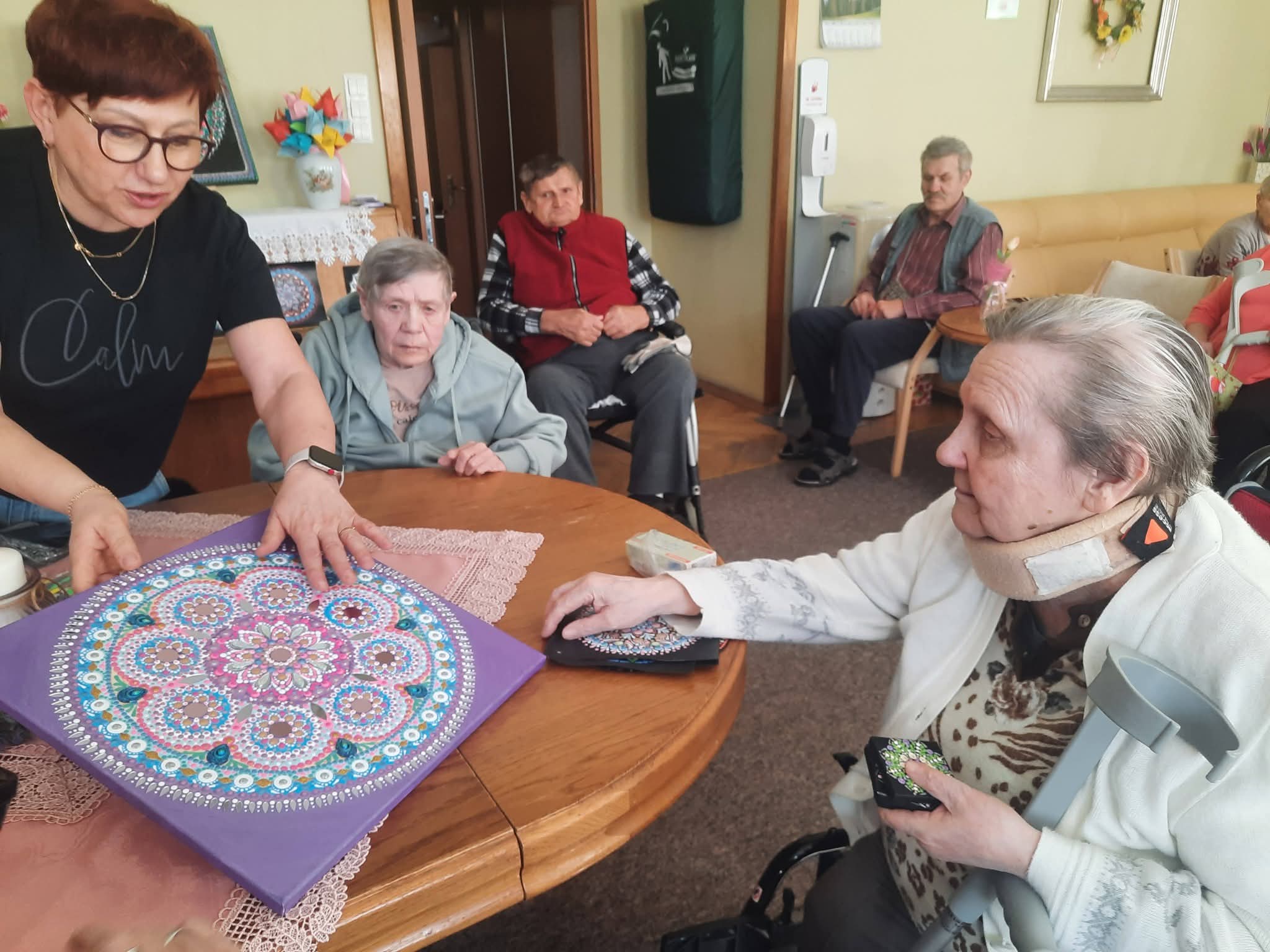 W ramach projektu „Ciekawy Człowiek w Naszym Domu” gościliśmy na zajęciach Panią Bogumiłę, która podzieliła się z nami swoją pasją do mandali. Mieszkańcy mieli okazję namalować mandale, które upiększyły ich pokoje. Nasi Seniorzy na terapii indywidualnej korzystają z mobilnego gogle relaksacyjnego VR Tierone Go…? Urządzenie to służy do redukcji lęku, podniesienia nastroju oraz wprowadzeniu użytkownika w stan odprężenia. Mieszkańców zachwyciła medytacja wśród głębin oceanu, różnorodnych odmian ryb morskich i przepięknych kolorowych raf koralowych. „Dzień Kobiet” w Naszym Domu spędziliśmy przy wspaniałym repertuarze Zespołu „Turoszowianie”. Kochani dziękujemy za ten wspólnie spędzony czas.