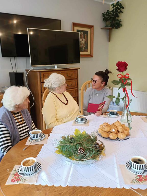 W czwartkowy poranek Pani Krystyna obchodziła swoje 76 urodziny, dlatego z tej okazji otrzymała piękne życzenia od Mieszkańców, Personelu oraz Pani Dyrektor DPS ,,Ostoja ” Anny Kasińskiej. Był to mile spędzony czas przy kawie i pysznym cieście. Jeszcze raz Pani Krysiu Wszystkiego Najlepszego!