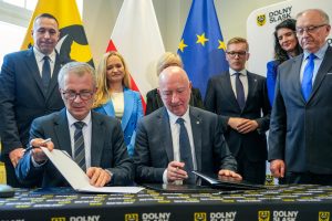 Dzisiaj (25.03.2026 r.) w Urzędzie Marszałkowskim Województwa Dolnośląskiego, przy udziale Minister Zdrowia Jolanty Sobierańskiej-Grendy, Prezesa Narodowego Funduszu Zdrowia Filipa Nowaka, Marszałka Województwa Dolnośląskiego Pawła Gancarza, Wojewody Dolnośląskiej Anny Żabskiej, Starosty Bolesławieckiego Tomasza Gabrysiaka, Starosty Zgorzeleckiego Artura Bielińskiego, Wicestarosty Mirosława Fiedorowicza oraz Wicestarosty Bolesławieckiego Patryka Hałki podpisano porozumienie rozpoczynające proces konsolidacji szpitali w Bolesławcu i Zgorzelcu. To ważny krok w kierunku budowy nowoczesnego i stabilnego systemu opieki zdrowotnej, odpowiadającego na realne potrzeby mieszkańców regionu. W wydarzeniu uczestniczyli również Członkowie Zarządu Powiatu Zgorzeleckiego Ireneusz Owsik, Krystyna Radzięta oraz Marian Matyjasik, Dyrektor Wielospecjalistycznego Szpitala – Samodzielnego Publicznego Zespołu Opieki Zdrowotnej w Zgorzelcu Zofia Barczyk oraz Dyrektor Zespołu Opieki Zdrowotnej w Bolesławcu Kamil Barczyk.