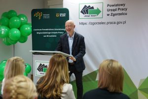 W wydarzeniu udział wzięli również Starosta Powiatu Zgorzeleckiego Artur Bieliński oraz Przewodniczący Powiatowej Rady Rynku Pracy Pan Tadeusz Baranek, podkreślając rangę i znaczenie tego wyróżnienia. Spotkanie było także okazją do rozmów na temat roli oraz potrzeby dalszego wzmacniania publicznych służb zatrudnienia.