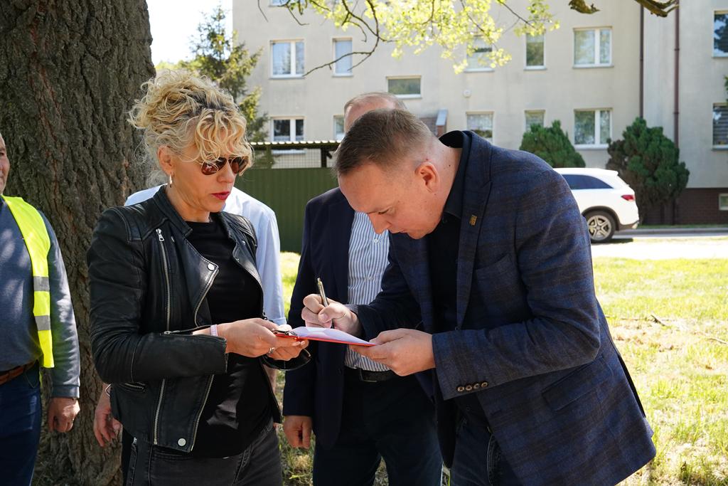 Dzisiaj (13.05.2025 r.) w miejscowości Opolno Zdrój, Starosta Zgorzelecki Artur Bieliński wraz z Wicestarostą Mirosławem Fiedorowiczem w obecności Burmistrza Miasta i Gminy Bogatynia Wojciecha Dobrołowicza przekazali wykonawcy plac budowy.