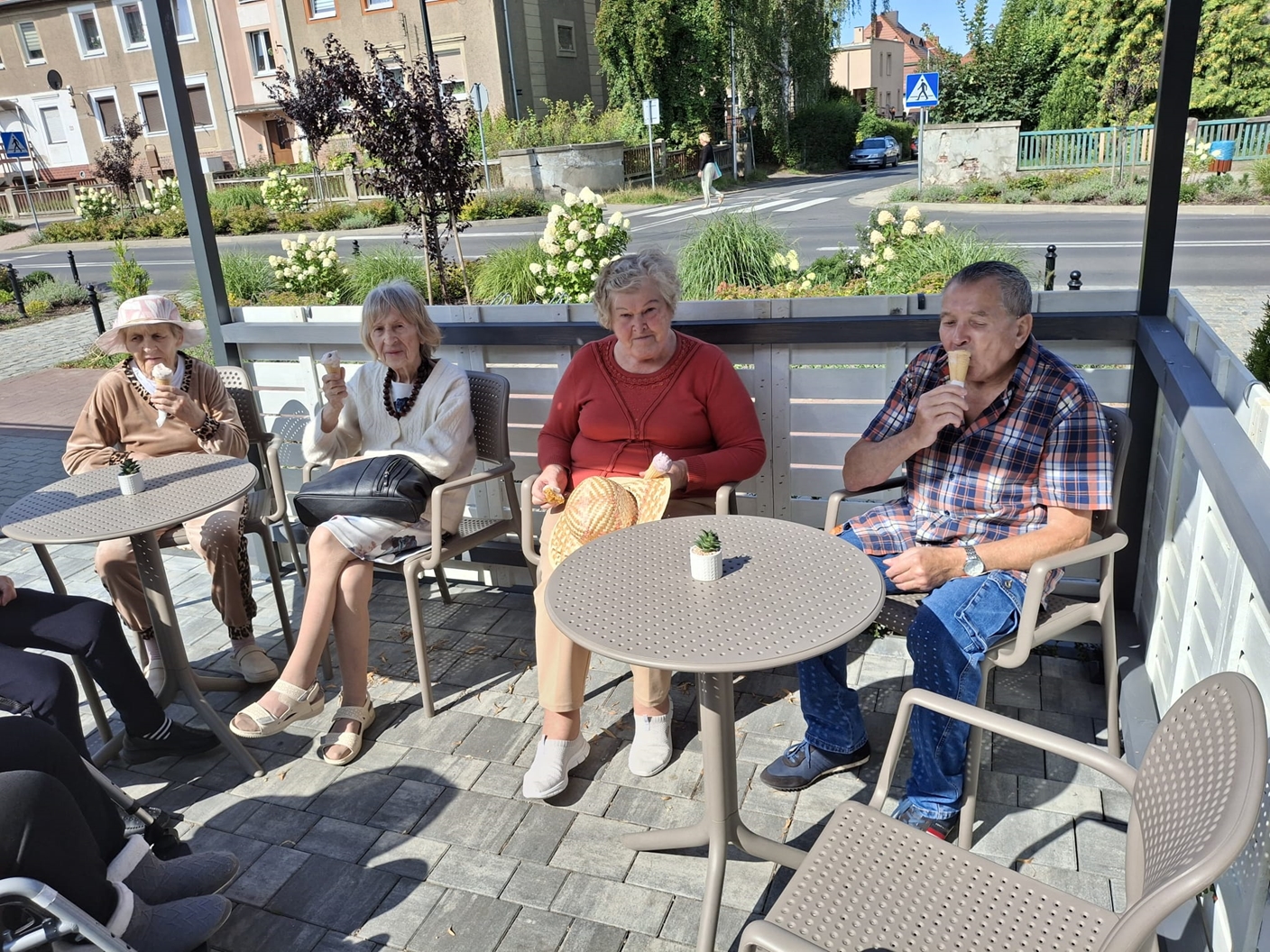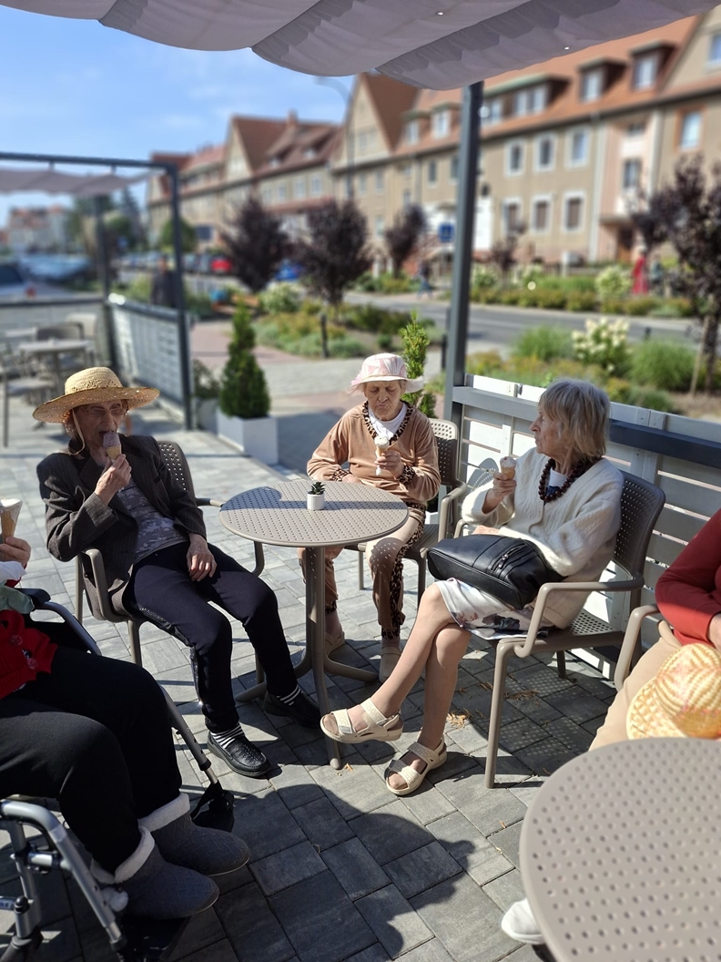 W ciepłe słoneczne dni Mieszkańcy DPS „Ostoja” spędzali czas w pobliskim parku spacerując jak też kosztując pysznych lodów w lodziarni Amore Mio Gelato.