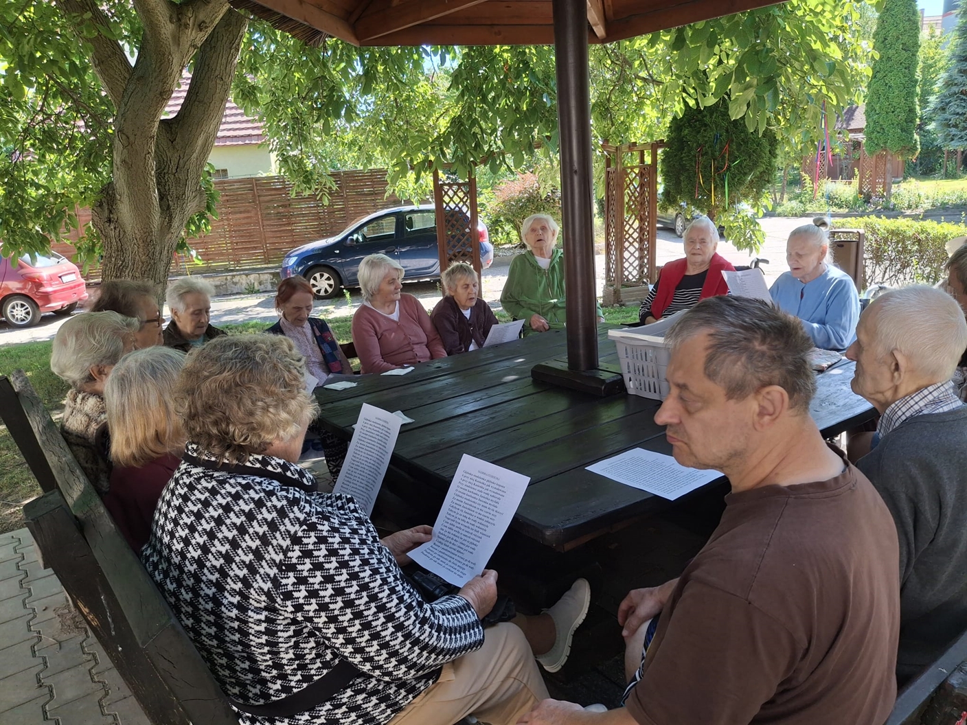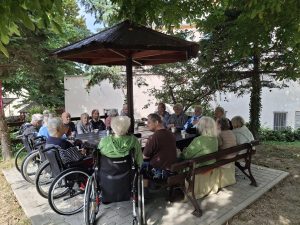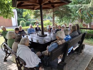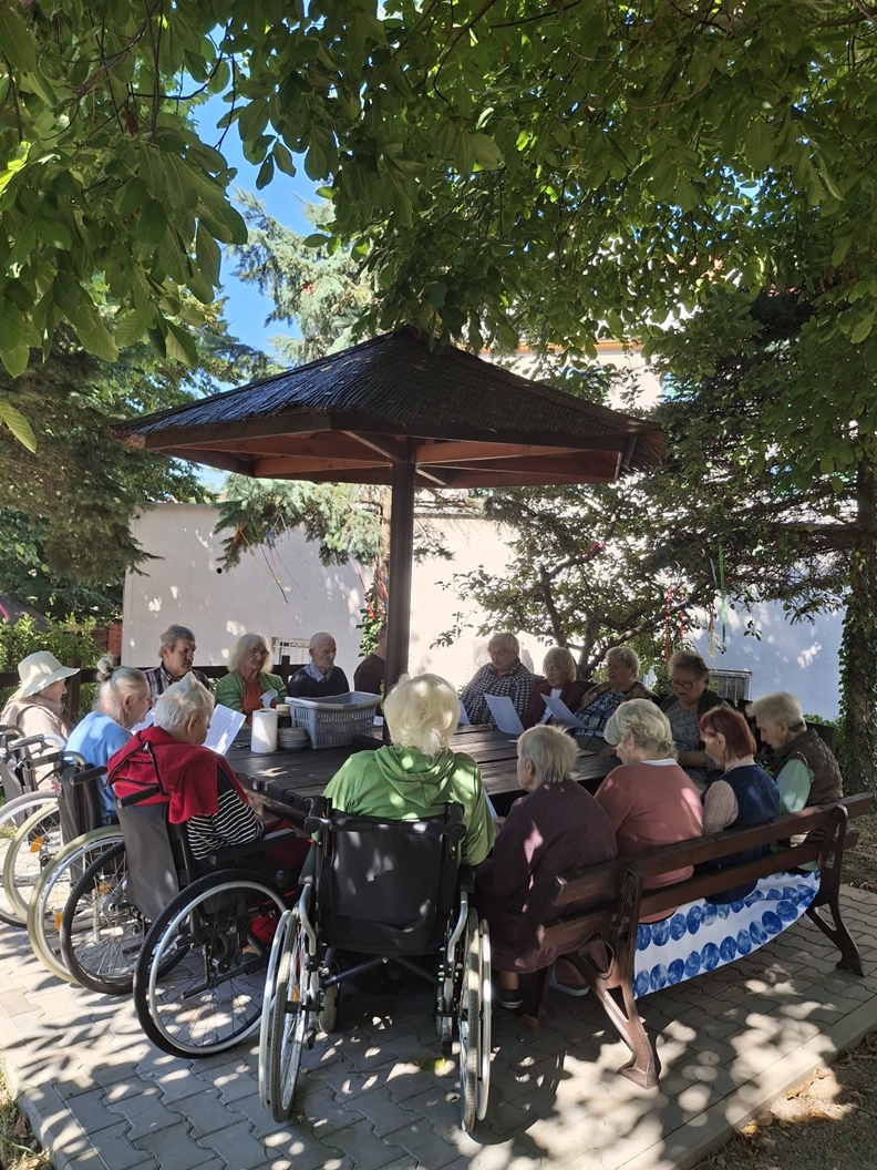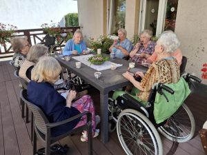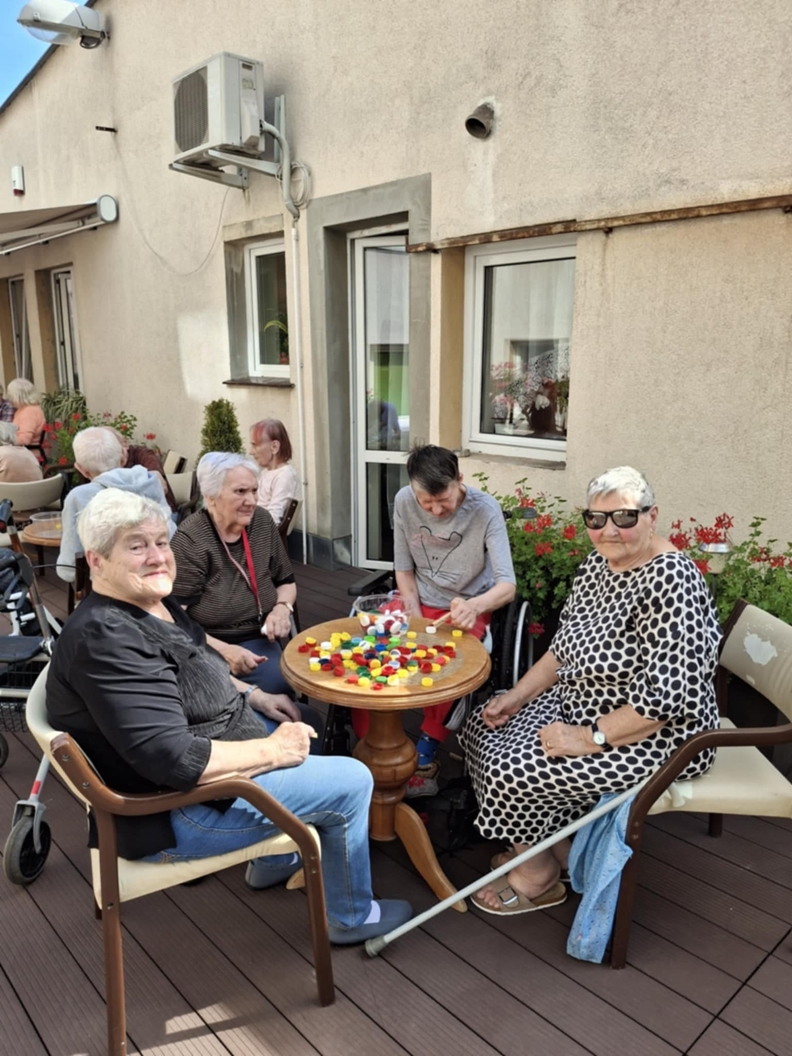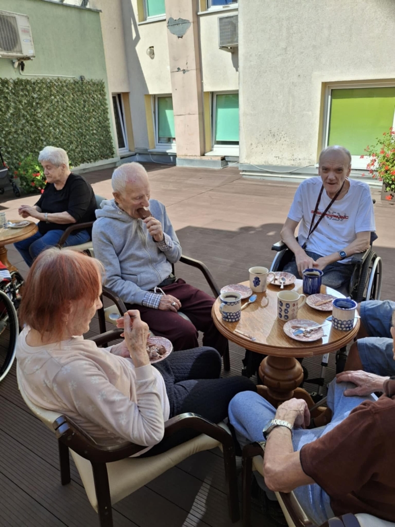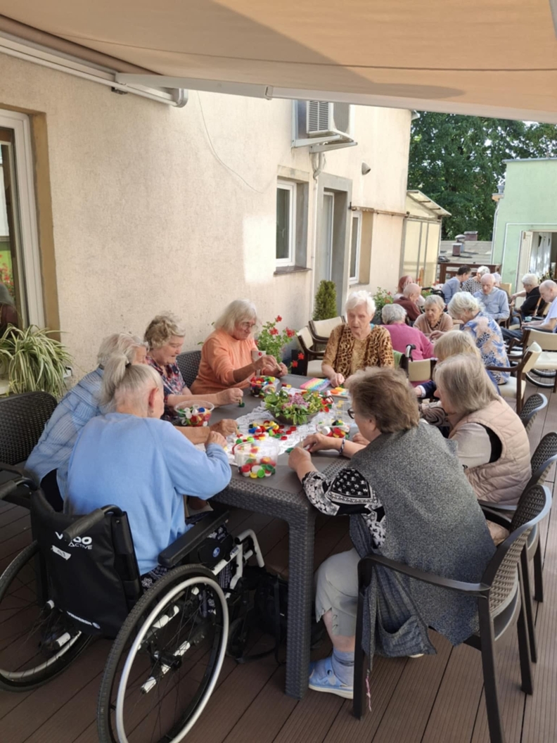 Korzystając z pogody Mieszkańcy uczestniczyli w zajęciach terapii zajęciowej na tarasie i w ogrodzie Naszego Domu. Był to mile spędzony czas na świeżym powietrzu, który poprawiał nastrój oraz samopoczucie wśród drzew i ptaków.
