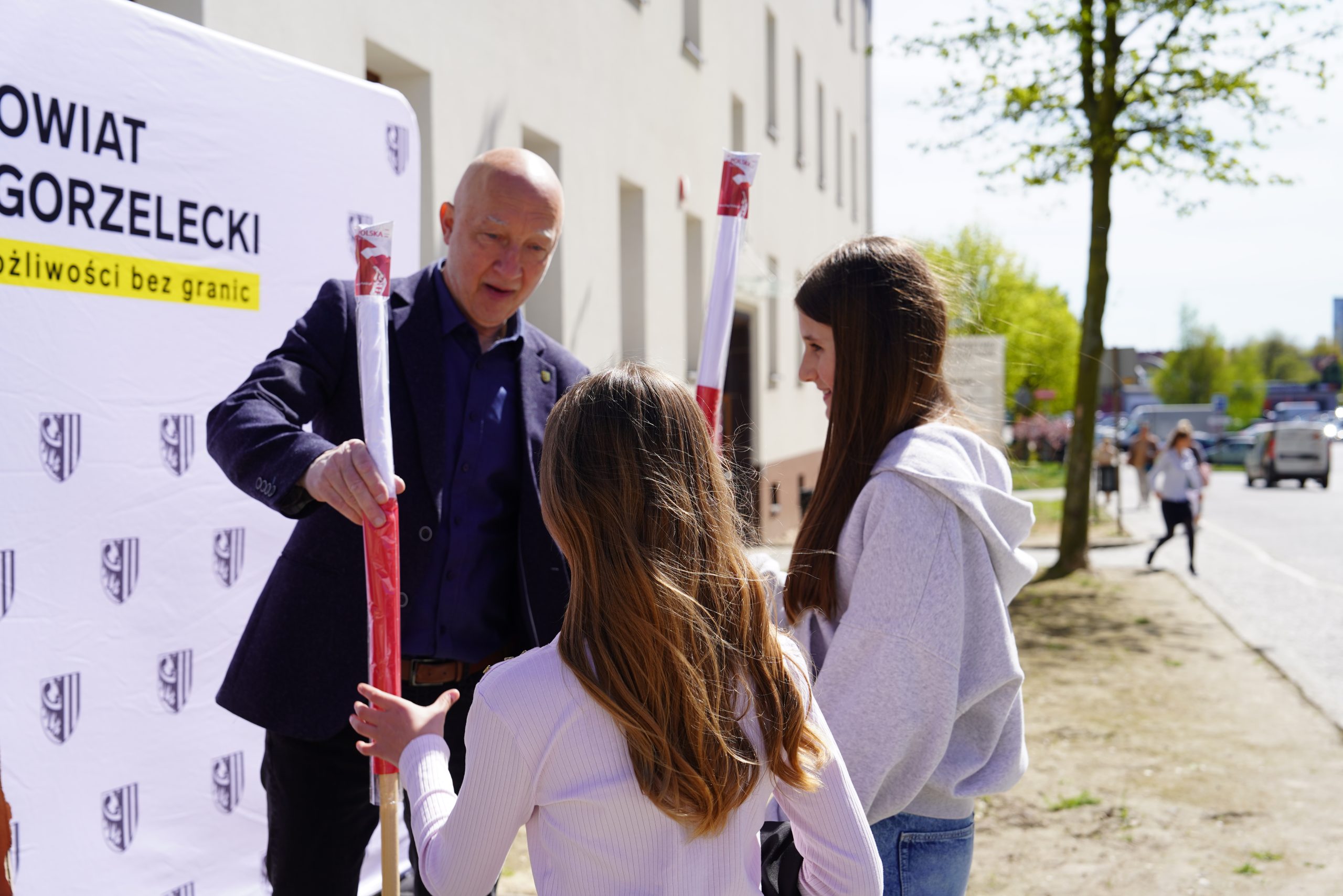 Starosta Zgorzelecki Artur Bieliński osobiście przekazał mieszkańcom kilkaset flag, zachęcając do wspólnego świętowania oraz wywieszenia narodowych barw w domach, na balkonach i posesjach.
