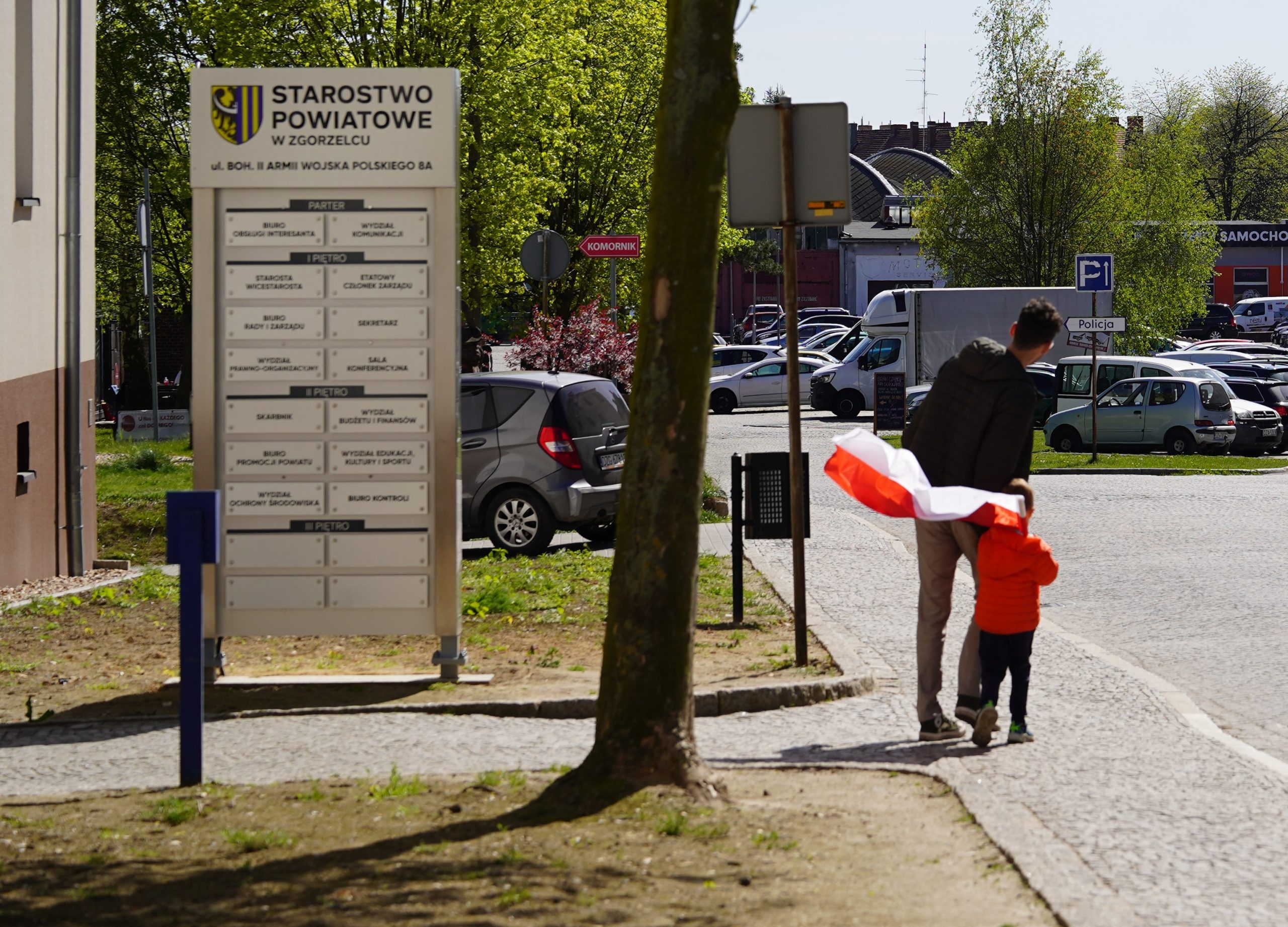 Z okazji zbliżającego się Święta Flagi Rzeczypospolitej Polskiej wczoraj 28.04.2026 r. przed budynkiem Starostwa Powiatowego w Zgorzelcu odbyła się wyjątkowa akcja rozdawania biało-czerwonych flag mieszkańcom naszego powiatu.