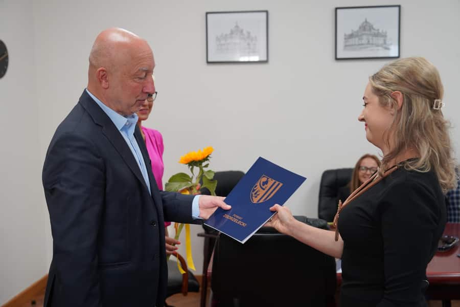Dzisiaj 3 września 2025 r. Starosta Zgorzelecki Artur Bieliński przyjął ślubowanie oraz wręczał akty nadania stopnia awansu nauczyciela mianowanego nauczycielom, którzy w dniu 22 sierpnia 2025 r. zdali egzamin.