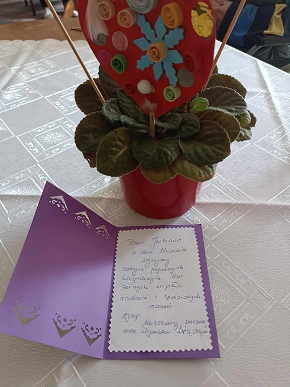 Jubilat otrzymał piękne życzenia od Mieszkańców, Personelu oraz Pani Dyrektor. Jeszcze raz wszystkiego najlepszego Panie Julianie.