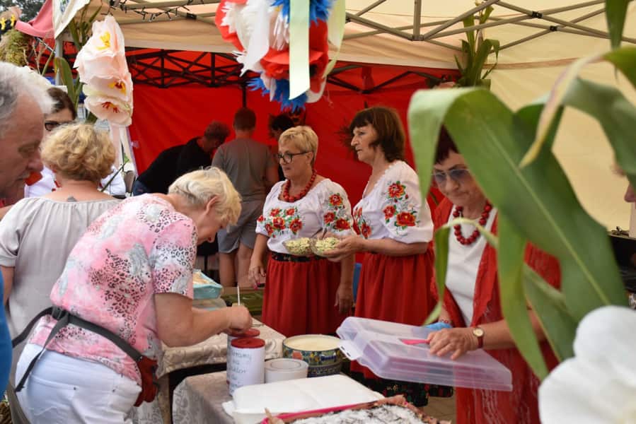 Na gości czekały również bogato zastawione stoiska, przygotowane przez lokalne Koła Gospodyń Wiejskich oraz Radę Parafialną. Można było skosztować tradycyjnych potraw, domowych wypieków oraz lokalnych specjałów. Nie zabrakło również jadła z grilla oraz ciepłych i zimnych napojów.