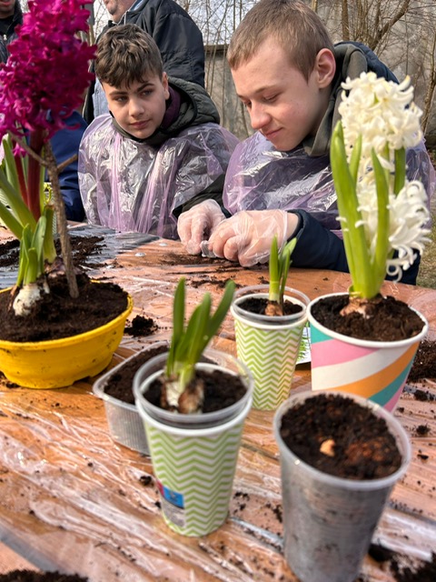 W czwartek (19.03.2026 r.) klasy IV-VIII U Specjalnego Ośrodka Szkolno-Wychowawczego im. Marii Grzegorzewskiej w Zgorzelcu w ramach realizacji zajęć z programu wychowawczego, wzięły udział w zajęciach ogrodniczych, podczas których samodzielnie sadziły kwiaty.